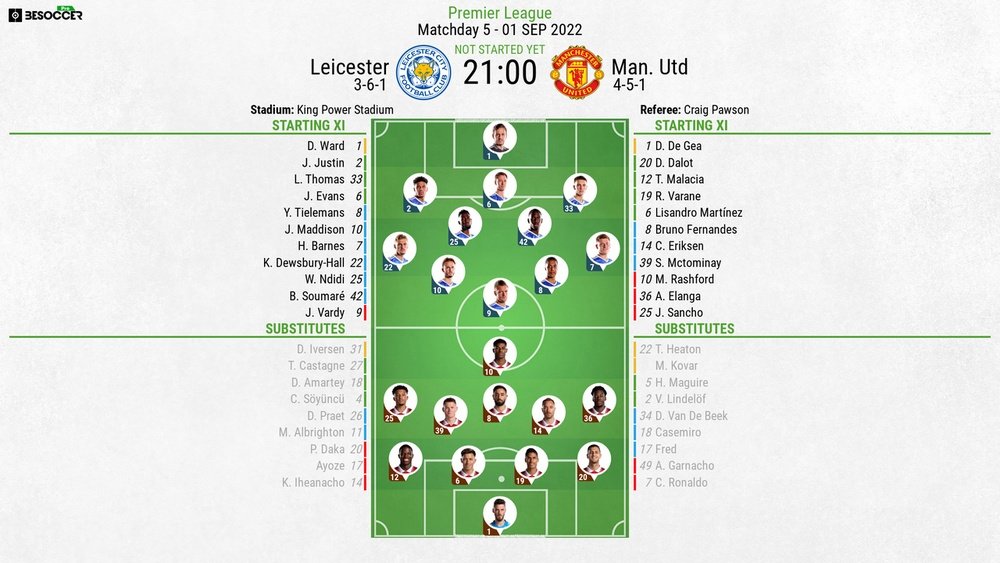 Leicester City vs Man United lineups